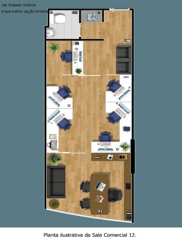 Excelente Sala Comercial c/ salão, copa e WC, área privativa total de 40,70 m².
